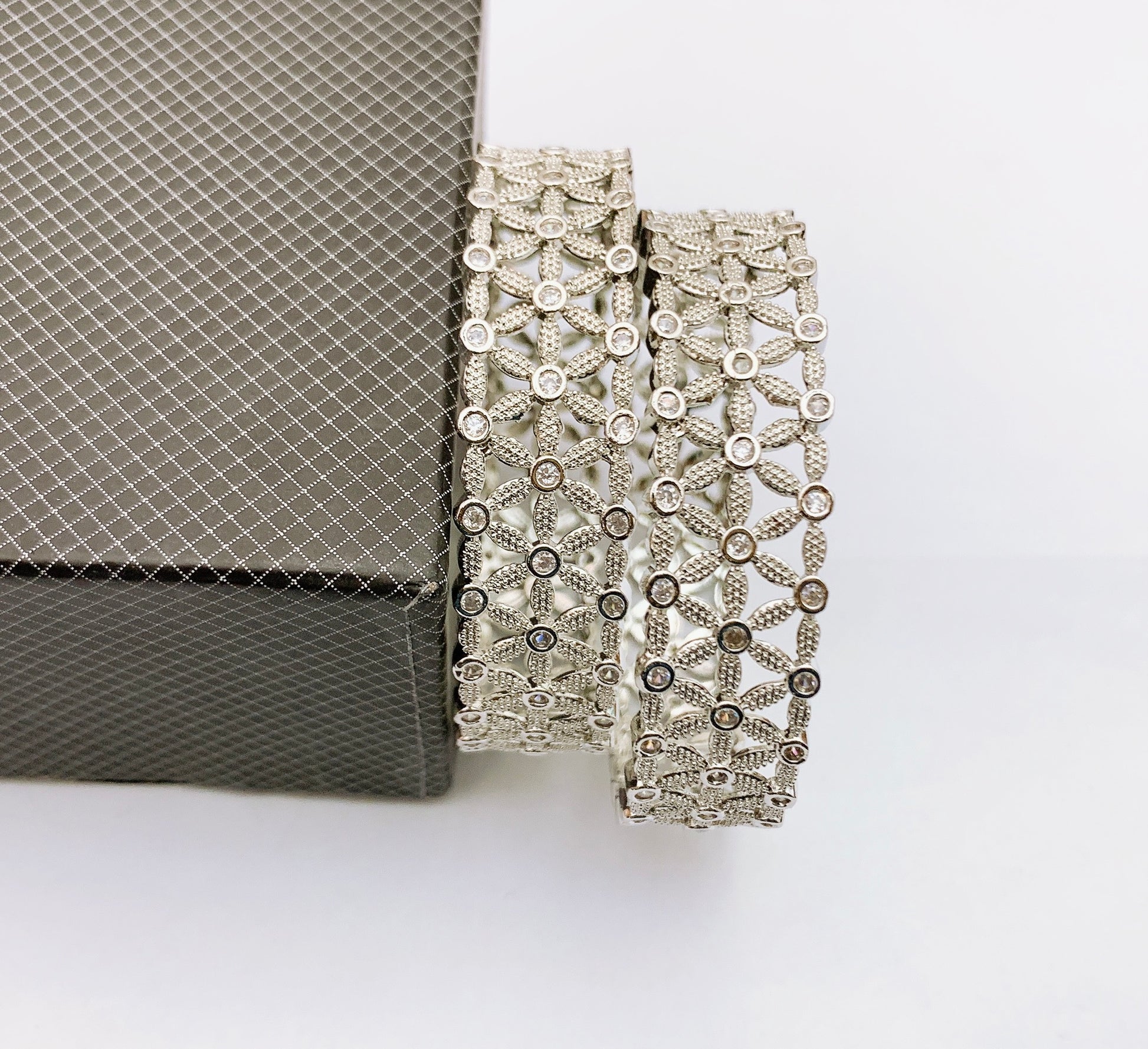 Imported one carat zircon 2 piece bangles in real stone